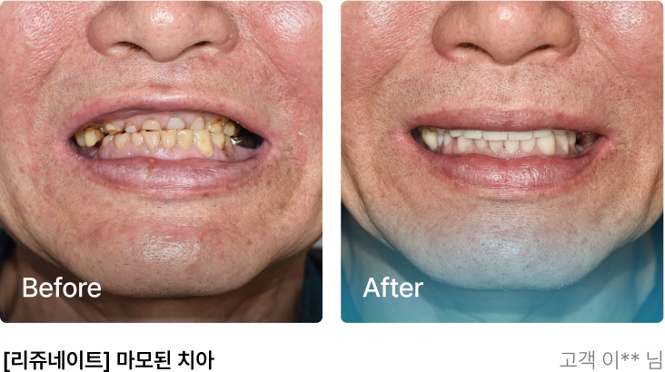 리쥬네이트는 교모나 마모된 법량질을 복원하는 치료로 무삭제 혹은 최소삭제로 법량질을 복원합니다.