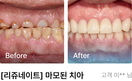 리쥬네이트는 교모나 마모된 법량질을 복원하는 치료로 무삭제 혹은 최소삭제로 법량질을 복원합니다.